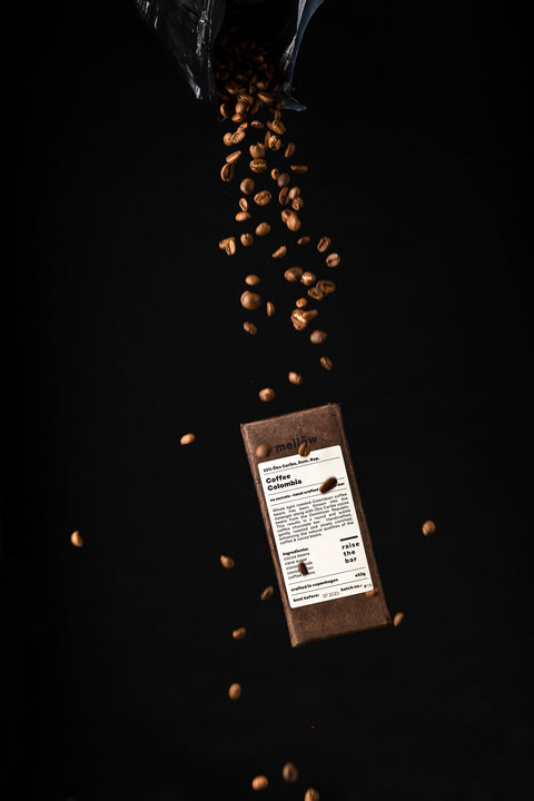 We source freshly roasted coffee from local Copenhagen Coffee Roasteries. We then drop a bag og freshly roasted coffee beans into our melanger, creating a fragrant coffee chocolate bar.